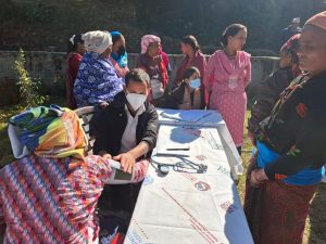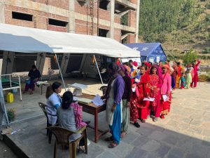 Female Community Health Volunteers (FCHVs) supported the camps by visiting households and using questionnaires to assess the reproductive health of women in each household. Those identified with potential reproductive health concerns were encouraged to attend the health camps.
