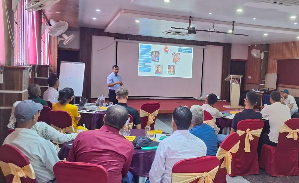 The workshop, facilitated by Suraj Acharya, Project Manager, ADRA Nepal, commenced with welcome remarks from Tom Pignon, Country Director of ADRA Nepal, who shared his expectations and appreciation for the team. Dr. Ghan Shyam Bhatta, Program Director of ADRA Nepal, presented an overview of ADRA’s journey in Nepal, while Virginia Pycroft, Program Manager of ADRA Australia, shared insights into ADRA Australia’s global engagement through the ANCP. Ashish Singh Rajput, Executive Director of RDC Nepal, introduced the partner organization and its areas of work, and Kabir Ratna Sthapit, Livelihoods Team Leader, provided an overview of ADRA Nepal’s livelihoods programming and the PARIBARTAN project.