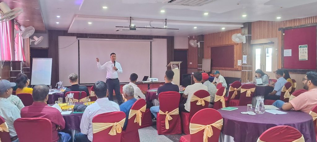 Further sessions were led by Suraj Acharya, who presented the project’s goal, outcomes, outputs, activities, and reporting schedules. Dibash Chandra Karki, M&E Coordinator, shared details of the MEAL plan and Complaints Feedback and Response Mechanisms (CFRMs). Deepa Shrestha, Finance and Administration Director, discussed financial and administrative procedures, including compliance, reporting, internal control, audit standards, and anti-fraud measures.
